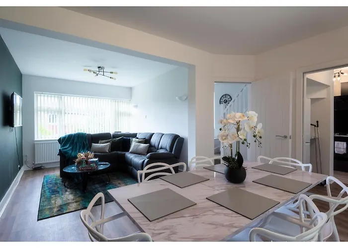 Die 1-Zimmer-Ferienwohnung Cozy 3 Bd House, Perfect For Large Group Of 6 liegt im Bezirk Salford, in einer Entfernung von 26 Autominuten vom Flughafen Manchester. 3 km von Blackfriars-Brücke entfernt, bietet das Apartment Reinigungsmöglichkeiten wie eine Waschmaschine.